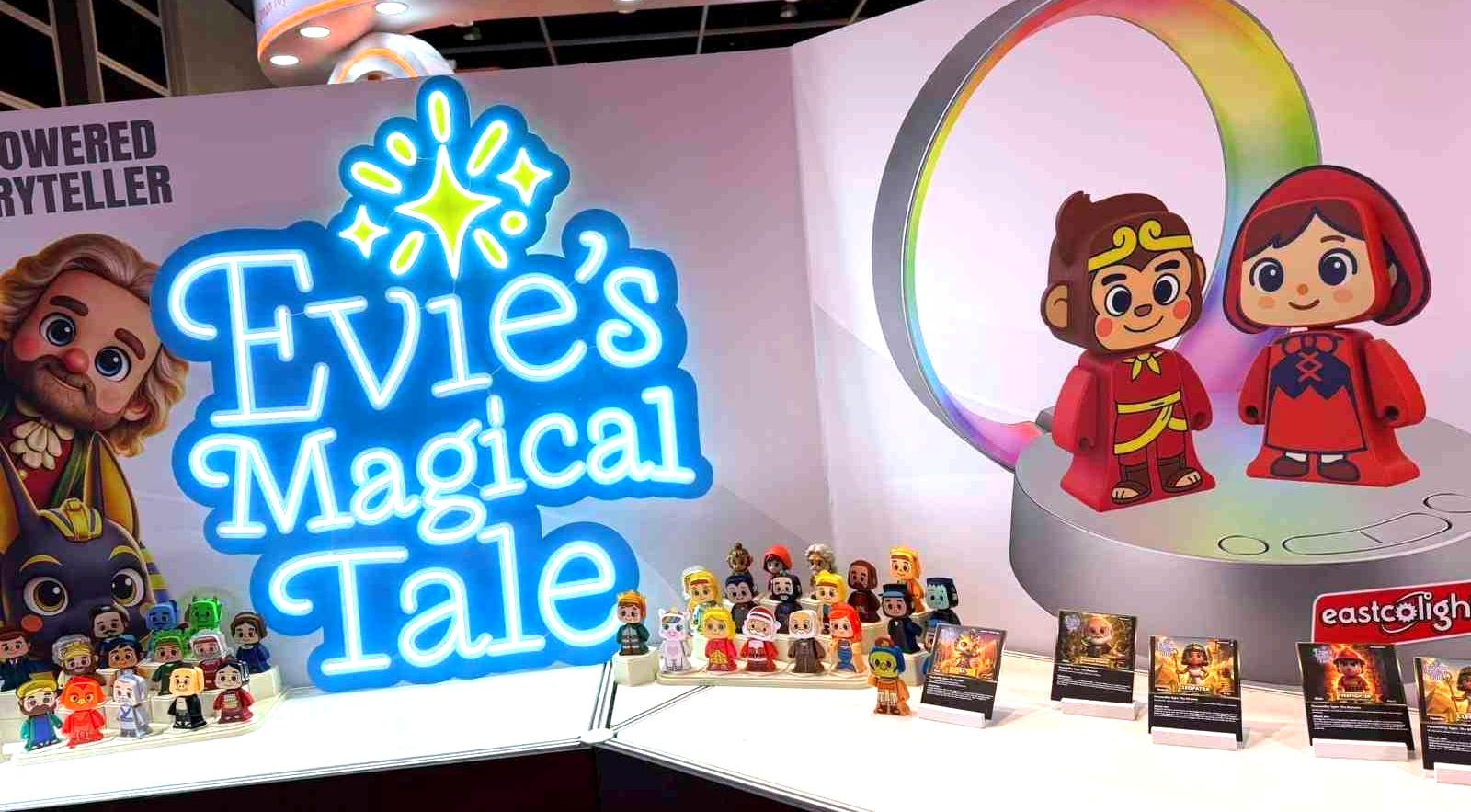 Evie’s Magical Tale es una nueva experiencia narrativa en la que el juego físico se une a la imaginación inteligente. Una base narradora se combina con una colección de figuritas de personajes. Cuando se coloca un personaje en el escenario, el dispositivo lo reconoce y comienza una historia original generada por IA y moldeada por la personalidad y los antecedentes de ese personaje. Cuando se colocan dos personajes juntos, Evie’s Magical Tale los hace conversar, dejando que sus personalidades choquen, cooperen y evolucionen hacia mundos narrativos completamente nuevos.