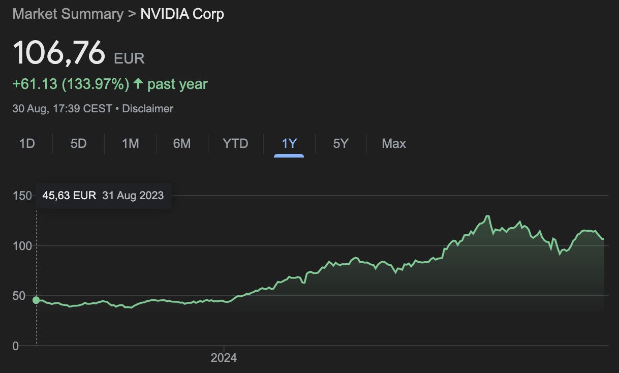 Nvidia no ha defraudado expectativas en su anuncio trimestral de resultados. Sus ingresos crecieron un 122% respecto al mismo trimestre del año anterior. Y aunque el valor de la acción cayó ligeramente, los analistas de bolsa parecen seguir apostando por un crecimiento de la valoración. Hasta ahora los grandes proveedores de computación en nube representan la mitad de sus ingresos y han invertido mucho en centros de datos para satisfacer la creciente demanda de los desarrolladores de IA. Esa concentración es un punto débil del valor de Nvidia, aparte de su capacidad para defender su ventaja competitiva frente a los muchos esfuerzos para robarle parte del pastel. Recordemos que el verano arrancó con el informe de Goldman Sachs en el que se preguntaban ¿dónde está la IA en los resultados de las empresas? Si los clientes de los proveedores de cloud pierden de repente la fe en la ola de la IA, es probable que Nvidia tenga problemas.