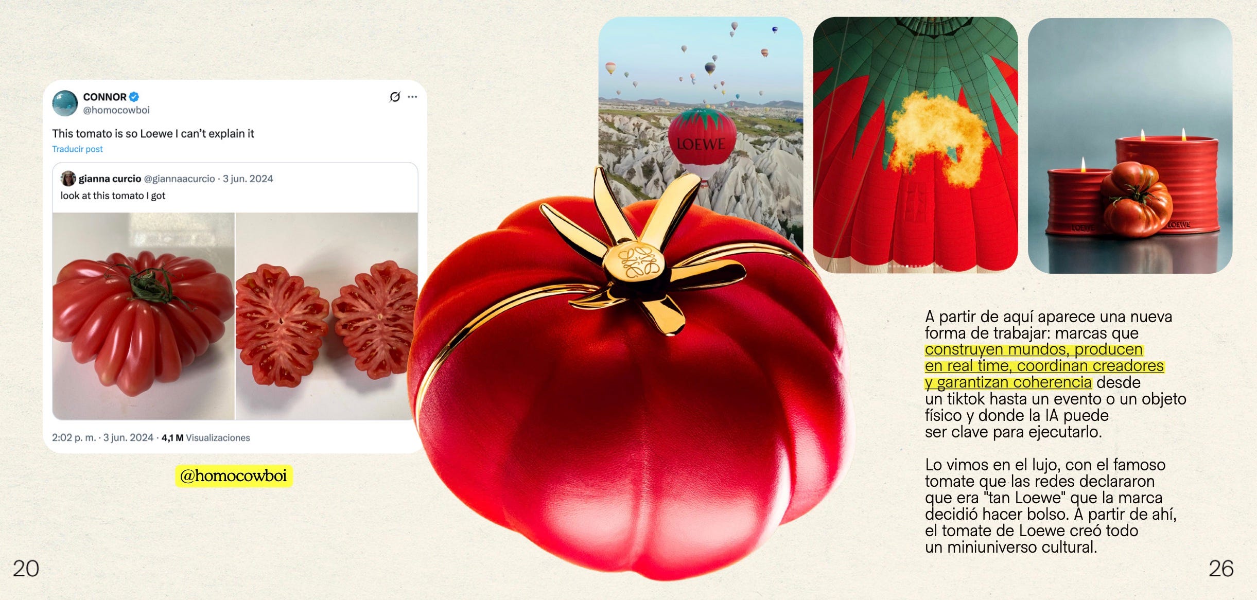 Vibe coding: las marcas que ganan no usan la IA para reemplazar la creatividad, sino para materializar universos narrativos. El ejemplo de Loewe es paradigmático: una marca que “entiende su vibra” tan bien que puede codificarla en cualquier formato, físico o digital. La IA permite escalar la identidad, no solo la producción.