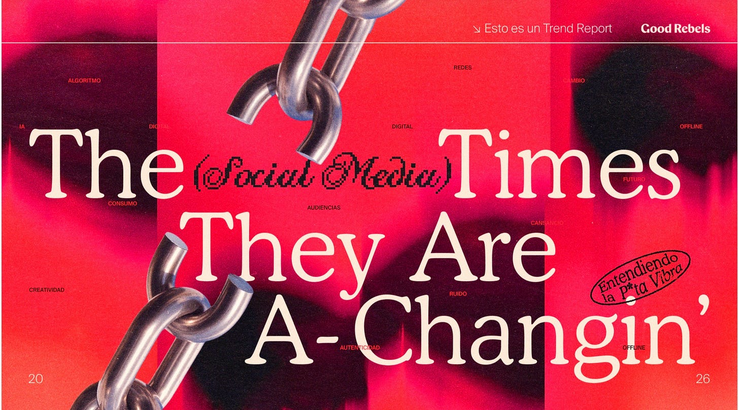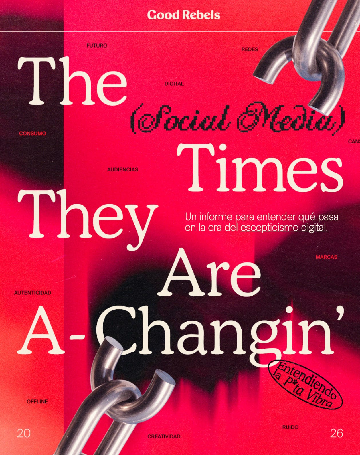 Esta semana hemos publicado desde Good Rebels el informe The (Social Media) Times They Are A-Changin’, en el que hemos identificado cuatro movimientos que marcarán la presencia digital de las marcas. No son modas: son señales de un reajuste social y cultural profundo.
