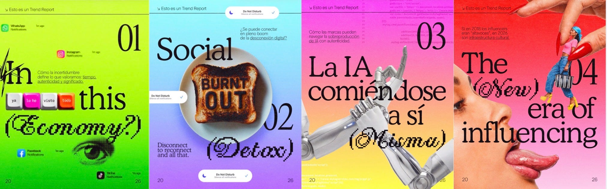 La economía del NO. Si durante años nos centramos en captar atención, ahora la clave es sostener la credibilidad. Fenómenos como el underconsumption core o el deinfluencing surgen como mecanismos de defensa financiera y emocional. La gente no quiere más recomendaciones, quiere filtros de calidad. Ya no tiene sentido pujar por visibilidad: se compite por significado.